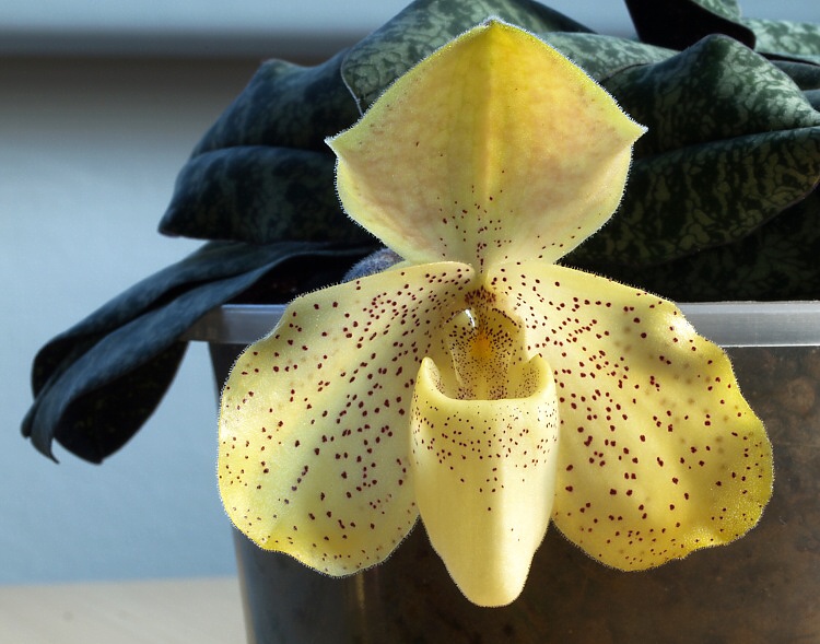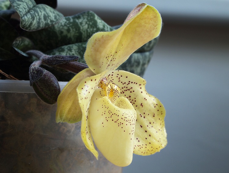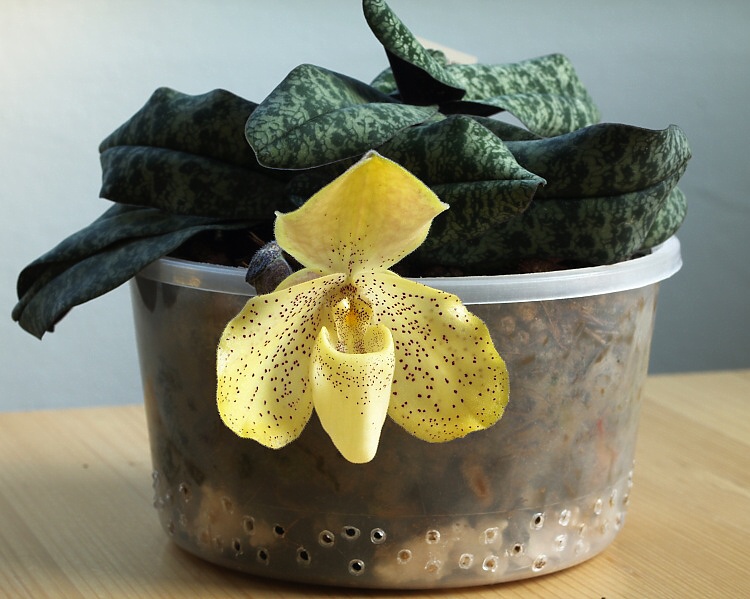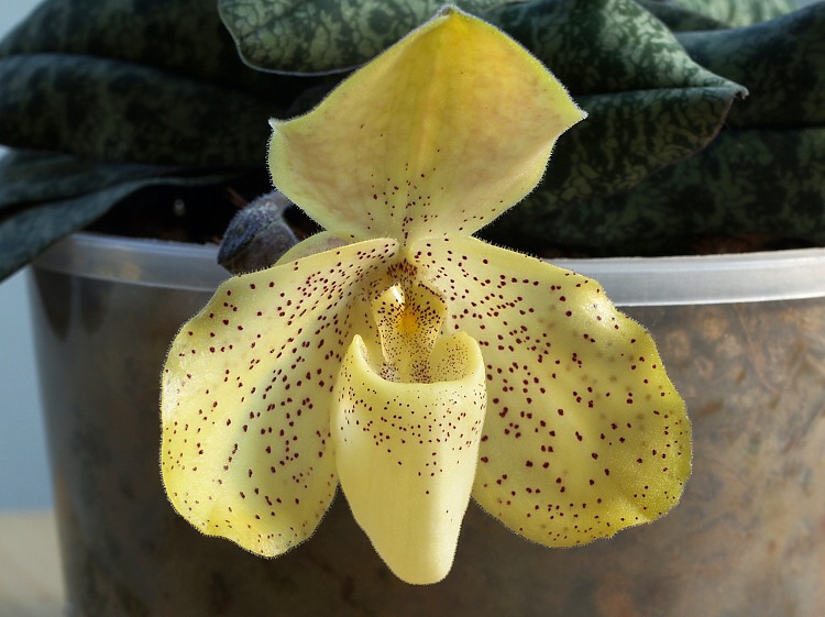 Paph.concolor Tento květ byl před několika týdny, zatímco poupě na jednom obrázku kvete teď. Ještě jedna růžice nasadila, tak nevím, zda-li to do zimy stihne.