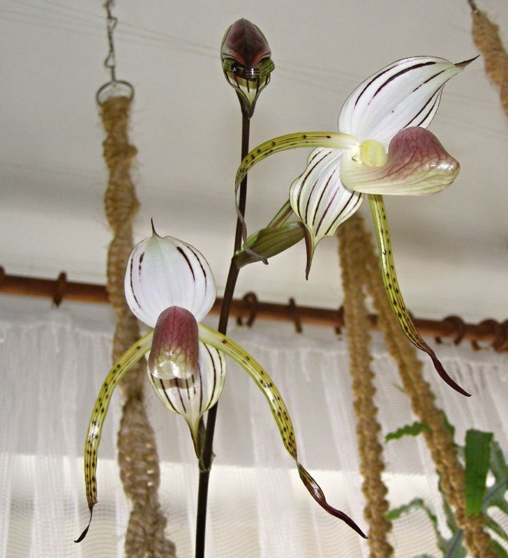 Paphio píše: No, nevím, jestli pokvete letos, ale do roka určitě. Na květ mi jde stonei, tady je foto z loňska: nádherná kytka, chybí mi tu tleskající smajlík. Střevíců se trochu bojím, zatím mám jen dva, obyčejné hybridy z obchodu. Kvetoucí jsem je koupila a zatím vlastní kvetení nemám. Ale je fakt, že je nemám dlouho. Oba mají za dobu co jsou u mě nové růžice, takže to je snad pozitivní informace a někdy se také dočkám květů. Zrovna minulý týden jsem při koupání orchidejí omylem zvrhla lavor s vodou a jedním střevícem, vodu měl chudák všude, sušila jsem ho, jak to šlo. Odnesla to stará růžice, listy úplně zrezly, ale nová je v pohodě a dokonce se ze substrátu tlačí špička další.