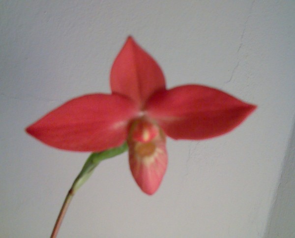Poprvé mi rozkvetlo Phragmipedium schlimii na poměrně slabé rostlině (mám ji teprve od podzimu). Tak raději další květy, které se na stvolu vyvíjejí, odstřihnu. Květ je takový prcek, ale moc pěkný. Dávám ho na porovnání s Paph. delenatii, kterému je velmi podobné.