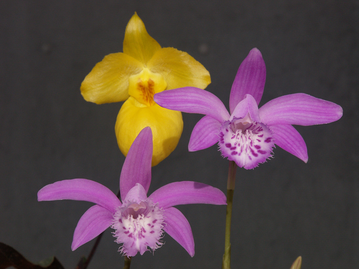 karel_t píše: Díky všem, ale já za to opravdu nemůžu! - udělaly to sami Haki - rostliny přezimovaly s podzimními pleionkami při teplotě kolem 5°C. Pavle - zde jsou celé rostliny. Kytky jsou trochu ohnuté, páč byly za bednou a plazily se za světlem, ale to mi nijak nevadí Přikládám ještě kompozici s P. x barbarae - takhle je to mnohem lepší K. Krásně ti to kvete,to je radost pro oči...