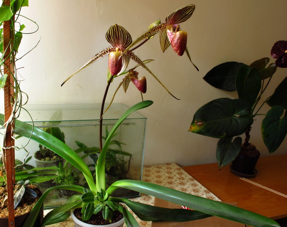 Jedno vykvetlé Paphiopedilum rothschildianum u Paphia .