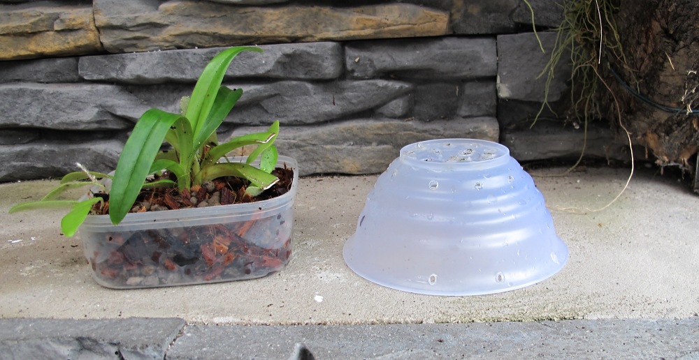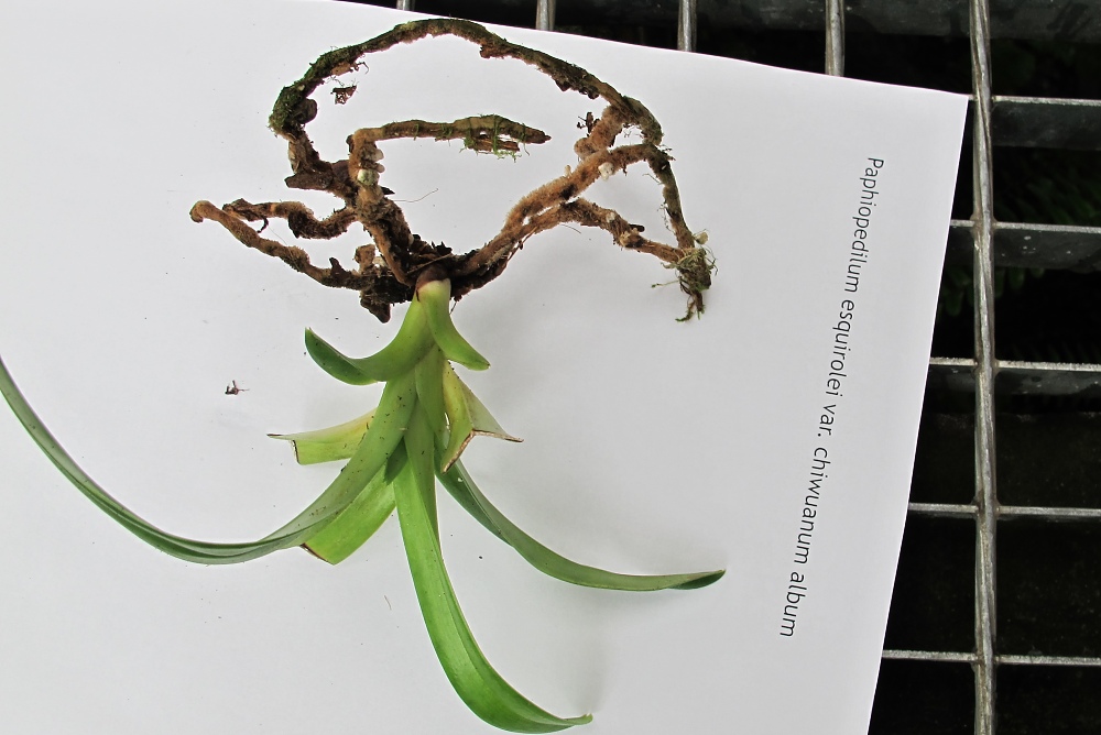 No vždycky se až tak nedaří jak by člověk chtěl.Jde o Paphiopedilum esquirolei var. chiwuanum(možná spíš P. hirsutissimum)Pořízen v dubnu 2012.Dneska vyklopen a teda kořeny nic moc. Přišla jsem tak o půlku kořenů.Sice se tvářily ok ale na pohmat byly dutý .Původně bylo pafíčko zasazeno do mističky +košík protože se mě mistička tenkrát zdála moc velká.Tak jsem to raději teď změnila na nízkou mističku+drenáž z lávy. Snad to bude lepší na vysychání pro mě přelejvače.....
