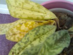 Ahojky všem, koukněte na tohle pafíčko, co s ním je? I některá ostatní pafíčka to mají ale tento nejvíc...připadá mi to jako chloróza...listy jsou vyšisované, vybledlé a prosvítá jen žilnatina, mají to staré růžice, ty nové jsou pěkné. Po čase list úplně zhnědne a seschne. Je to chyba výživy? Zalévám destilkou kterou střídám s kohoutkovou vodou, hnojivo skoro nepoužívám, jen zřídka Wuxal super a Biplantol ...
