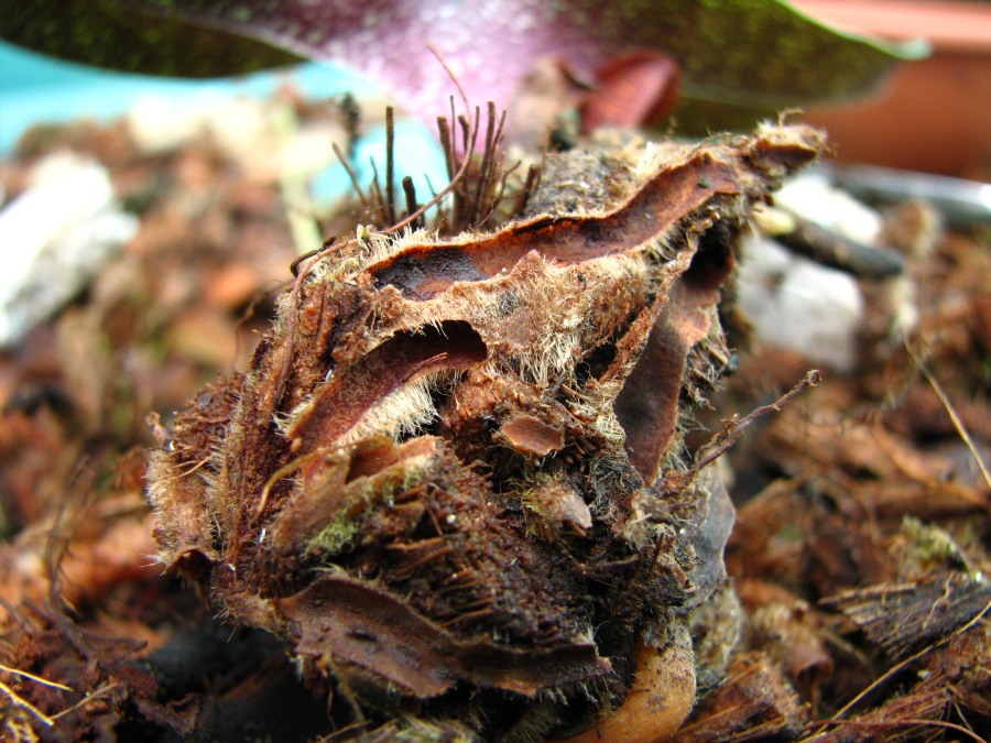 Pafíka mám od března o9 od http://www.blumenglanz.de/. Kytičku jsem si vybrala přímo v Drážďanech na výstavě jako kvetoucí - protože se mě líbila. Přesadila jsem ji do mělčí misky coco chipsu+piniovky.Trošku pemzy.Řekla jsem si že u uměle vypěstovaných hybridů to nebude tak drsný z poklesem k indukci jak v přírodě.A i vzhledem k rodičům - indukce na květ byla 13°C+ lehký přísušek. Květní pouzdro se ukázalo na začátku listopadu.Poupě už je na pohmat znát.Budu doufat ,že to zaseknutí ještě není tak dlouho ?a pafík zapne všechny síly a nakonec vykvete.Vykvete ta potvora co myslíte?