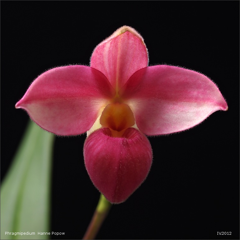Phragmipedium Hanne Popow, primární hybrid Phr. besseae x Phr. schlimii