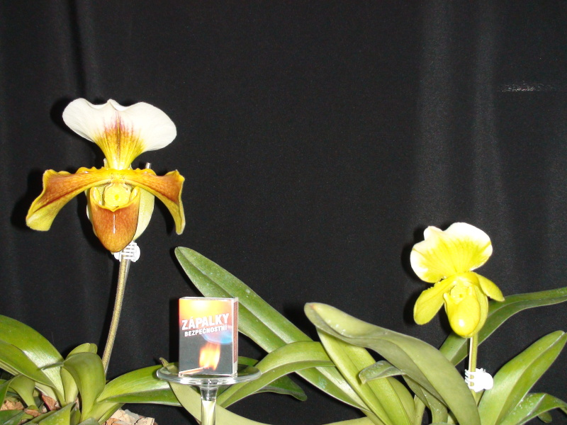Tak se tedy podívejte,co mi to vykvetlo za trpaslíka.Určitě to není P.tranlienianum,po velkém hledání jsem došel k závěru,že to je asi Paphiopedilum insigne var.sanderae,myslím,že to hybrid nebude vzhledem k jeho "velikosti" na výšku i šířku nemá víc než 5 cm.Pro srovnání je vyfocen s jedním no name,který má 10,5cm na výšku i šířku.P.insigne var.sanderae dle pana Googla je tak variabilní,že je pod tímto názvem snad 10 možných variant.Habitus rostliny by na insigne odpovídal,listy asi 20cm dlouhé,2,5cm široké,světle zelené bez jakéhokoliv mramorování.Ani na spodní straně listů není jakékoliv tečkování.Snad se tedy s určením nemýlím.A cena?V životě jsem přišel o víc a ne jen v penězích.Pěkný večer.