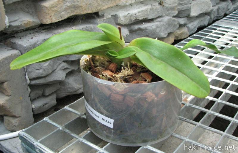 Ano to bylo v září09. Rostlinu mám od stejného prodejce a výstava byla fajn.Moc lidí tam nebylo -sranda byla ,že na každém rohu zněla čeština. Pěstování- jo od září října by měl být pokles teplot, přisvětluji . S tím jde samozřejmě i mírnější zálivka.Koupila jsem pafíčko o 1 růžici. Potom současně s květem rostly i dvě růžice- jen jedna roste.Druhá asi čeká.Taky mám pocit, že roste pomalu.Nejdelší list u nové růžice je nyní 5cm.Dám si to do záznamu a budu měřit-protože ted se mě zdá že nový list trochu víc přesahuje ten starý list.Tak snad roste-ale nemám o tom přesné měření.Chvilku se mě zdálo že jsem to přehnala z velikostí květináče( obal od cd 15cm průměr,výška9cm) substrát jsem prošpikovala ještě kapradinou.Je sranda pozorovat kořeny pafíčka jak současně rostou s tou kapradinou.Nevím jestli ho k jaru přesadím do menší mističky. Třeba by rostlo líp. Jak to šlo od začátku- http://haki1.rajce.idnes.cz/Paphiopedilum_hangianum/A nyní-