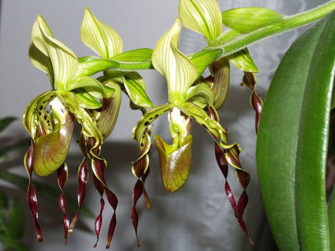 P.parishii právě kvete. Udělalo mi dva stvoly o 5 a 6 květech, což je proti loňsku slabší, kdy mělo 7 květů na stvolu. Budu muset méně hnojit.