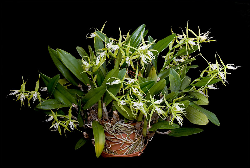 Ahoj, zrovna jsem ho rozdelil-trs byl tak velky, ze jsem ho uz nemel kam dat.Pestuji ho s katlejemi na tom nejsvetlejsim miste- v byte za jiznim oknem bez stineni. Trvalo mu asi 3 roky nez zacal kvest : http://www.oneorchid.com/Orchids/Epi.ciliare-plant.jpgPak uz bylo moc velke, dal jsem ho do stinu a kveteni prestalo, taky se zalivkou jsem na nej zapominal... Co si pamatuji, tak problemem bylo, ze listy byly takove lepkave a spatne se oteviraly a stejne tak poupata se spatne "klubala" ven... David