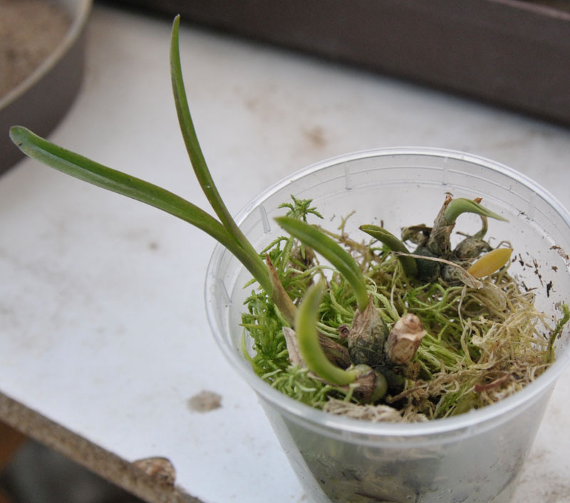 Nechal jsem si udělat miniskleníček se spodním větracím otvorem a vrchním otvorem, tak snad bude proud vzduchu stačit proti plísním... dal jsem tam ty chuděry... teď snad budou mít i teplo - i optimální vlhkost pro zakořenění... přidal jsem tam ještě gongoru, oncídko a eplc. - která byla taky spíš špatná, než zdravá - už jsem ji tak získal...