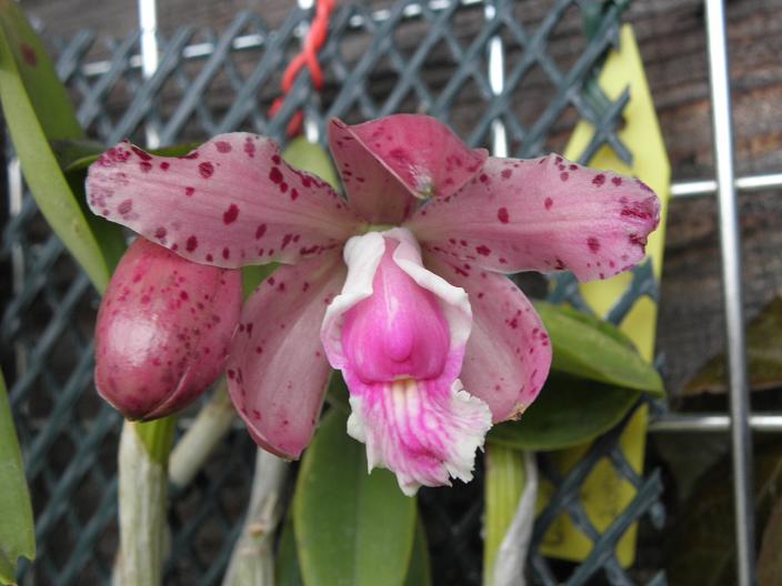Rozkvetlo mi také toto křížení - Cattleya Brabantiae (C.aclandiae x C. loddigesii) Docela jsem trpěla, než se poupě otevřeno, protože jak vidno nějaká potvora se mi ho snažila sežrat.