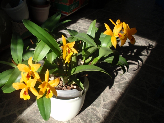 První kvetení po 4 letech od získání. Byla na kůře, ale tam se jí moc nevedlo,tak šla do květináče.