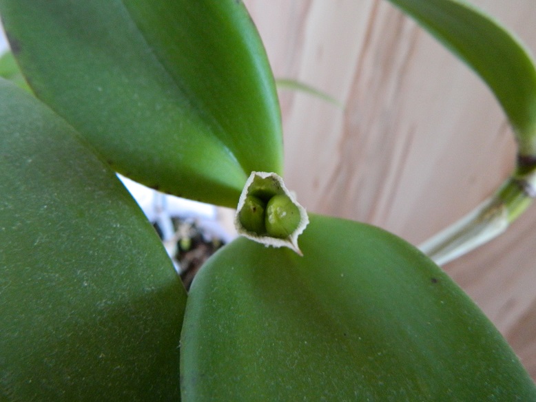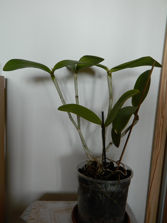 Cattleya amethystoglossa od pana Kláta. Přišla ke mně s pouzdrem a to se naplnilo dvěma poupaty. Tohle je první z nich, dnes se začalo otvírat.