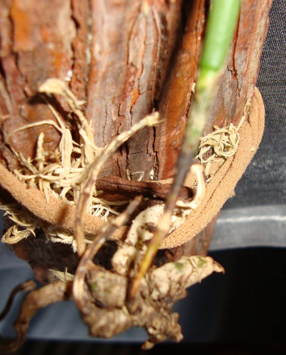 měla by mít co nejvíce světla a poměrně vysokou vlhkost 75-85% během celého roku. Já ji mám navázanou společně s tilandsií usneoides, která dobře drží vlhkost, ale je vzdušnější než mech. Dostala jsem ji také téměř bez kořenů, teprve teď skoro po půl roce, když jsem jí dala do vitríny pod světlo začíná pouštět nové kořeny.