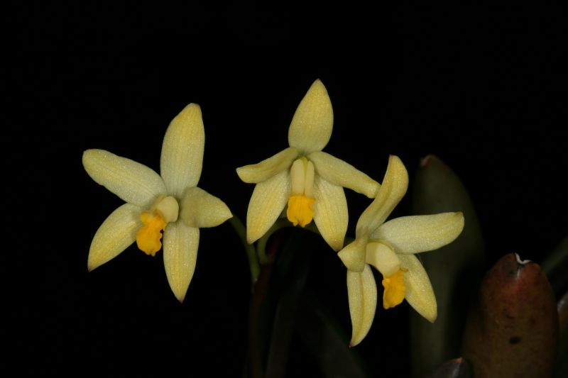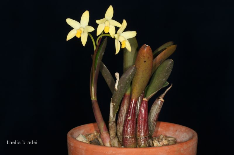 Dnes jsem objevil kvetoucí L. hispidula. Asi to bude obrovská vzácnost neboť je to žluté.  Už na první i druhý pohled je to L. bradei. Ale ještě prověřím. Koupeno od Bi Orchids a potvrzuje mi to neserioznost firmy se kterou jsem se setkal již dříve. Na hromadě mají (podle habitu a poškození rostlin) asi sběry z přírody a když chcete L. hispidulu tak sáhnou do hromady a toto je ona. A po vykvetení je to něco jiného. Naštěstí ji nemám a tak mě to nikterak nemrzí. Je to zatím takový mrzáček s nemnoha kořeny ale snahu má. Další dva výhony jsou ještě slabší a nepokvetou.