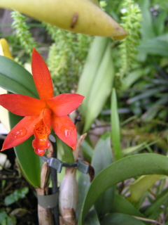Na výstavě v Brně jsem objevila tuto katku. Byla označena C.aurantiaca x S.cernua. Habitem, barvou, jako by té mé z oka vypadla. Tedy skoro. Moje má někdy 1 list, někdy dva, u této jsem to nezaznamenala. A moje má taky na pysku proužky. Ovšem jak jsem tak prohlížela fotky C.aurantiacy na netu, kresba na pysku je u ní proměnlivá ...
