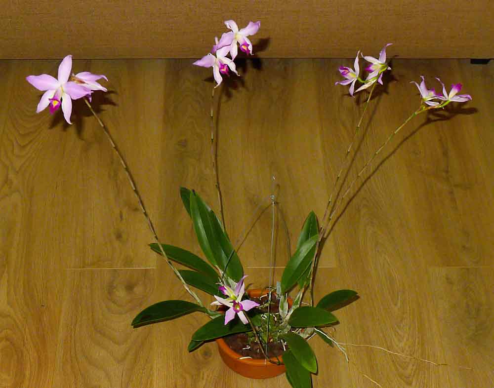 Na veľkosť rastlín pekné kvitnutie. Predpokladám, že u tej predchádzajúcej sú to spolu aspoň 2 rastliny. Mne rozkvitol komplet ten hybrid L. anceps x L. superbiens. Veľkosť rastliny aj tvar kvetov je niečo medzi rodičmi. Příloha:
