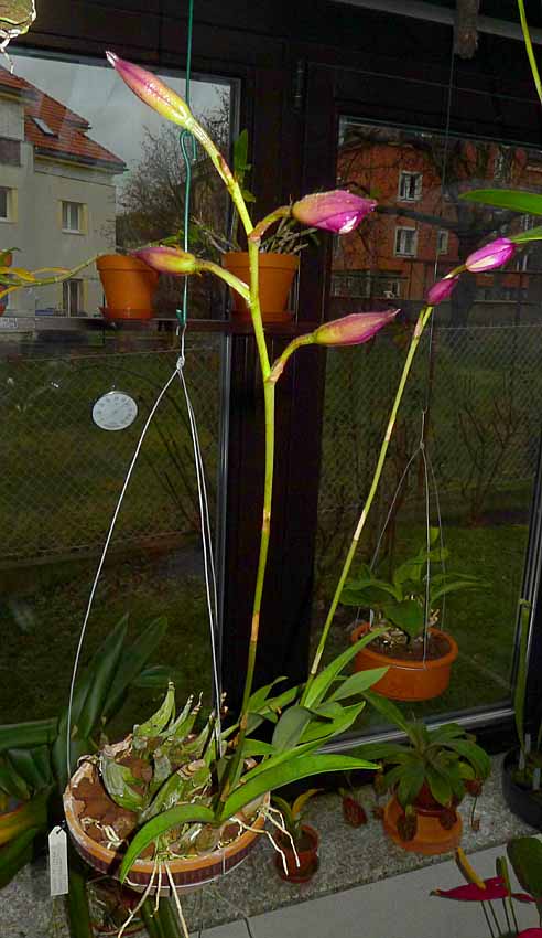 Je krásná. Já je mám jako loni. Tedy květní stvoly cca 30cm ale po poupatech ještě ani stopy. Na jedné rostlině 5 stvolů, na druhé 3. Je zajímavé, jak se ty kytky někdy chovají proti logice. Na ancepskách se mi na listech dělají občas hnědé fleky od napadení houbovou chorobou. Děje se to i venku. U mne naprosto nesnášejí rosení listů. Na L. speciosa se ve stejných podmínkách netvoří nic a listy jsou čisté. Přitom L. speciosa roste v aridnějších oblastech než L. anceps. Z logiky věci bych si myslel, že to bude přesně naopak. L. anceps mám i tepleji(jako v přírodě), takže z nachlazení to nebude. Asi je budu muset preventivně na podzim stříkat nějakým fungicidem, protože takhle se mi nelíbí.