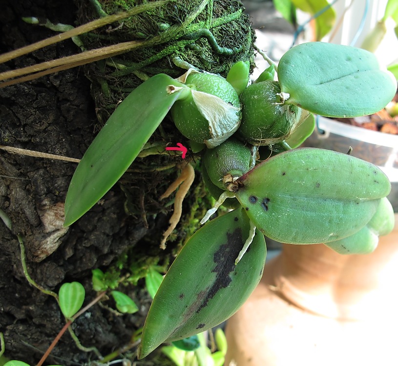 Sophronitis brevipedunculata-hlásím tvoření 4pahlízky. Sophronitis je navázán na hodně osluněném místě -no v zimě bude asi hůř ,přisvětlovat se bude tento rok jinak a to na druhé straně zz.Třeba by byl pak květ vybarvenější.Uvidíme jestli pokvete
