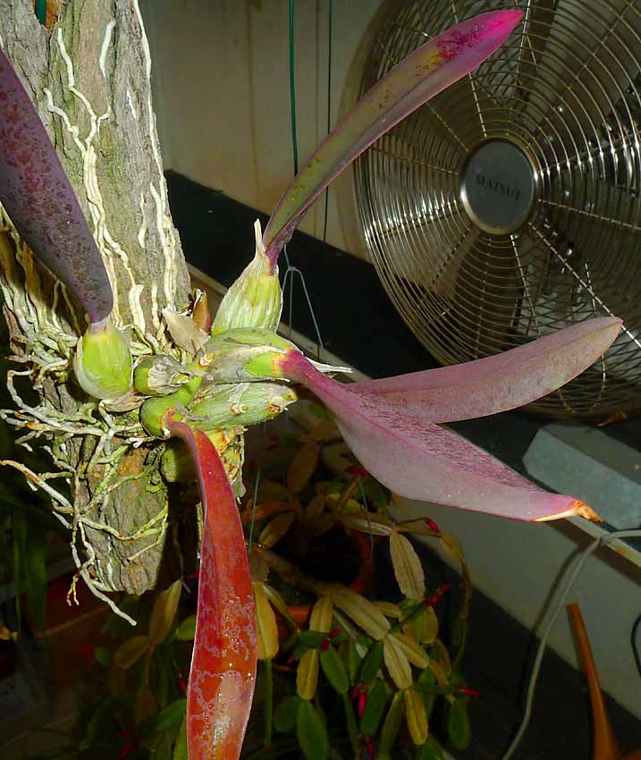 Současné slunečné období barví rostliny Laelia speciosa do krásné fialové barvy a současně se rostliny i budí. Doufám, že letos něco vykvete.