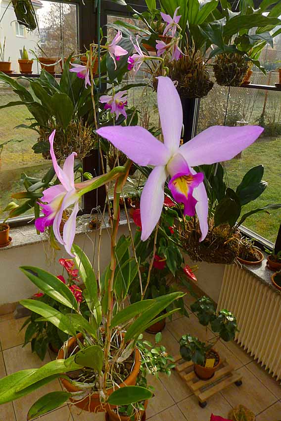 Laelia anceps rozkvetla pěti stvoly. Vyfotit se to dá hodně blbě  Nejdelší stvol má cca 70cm. Druhá rostlina se právě chystá.