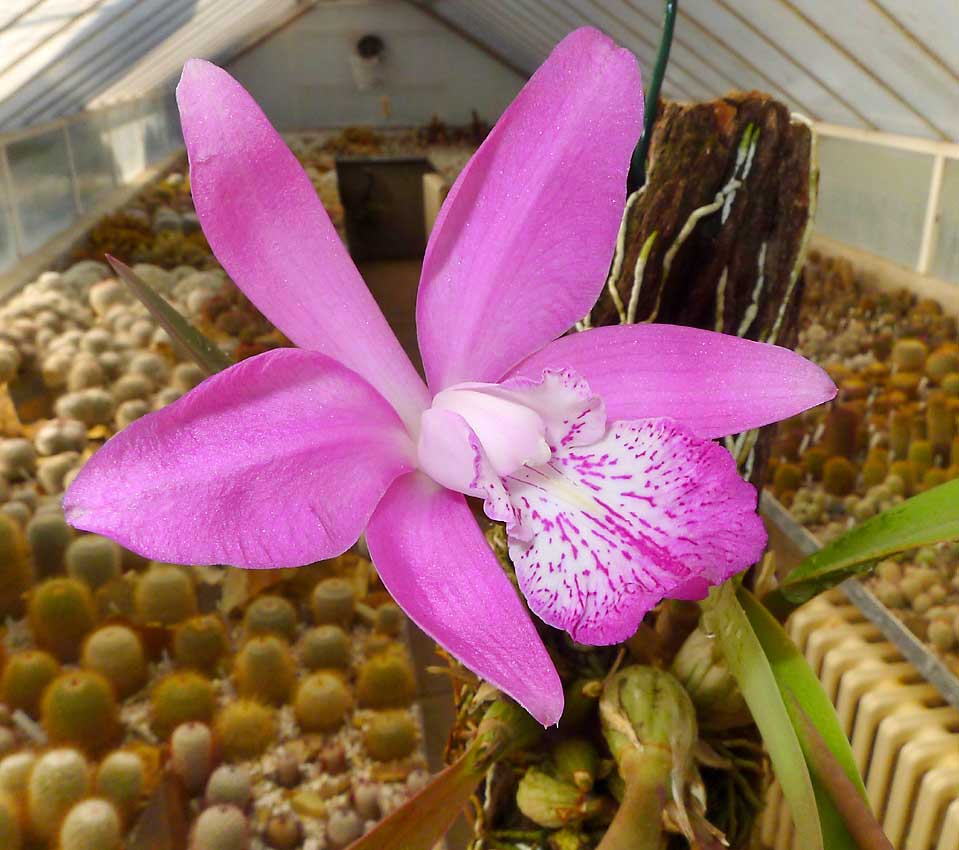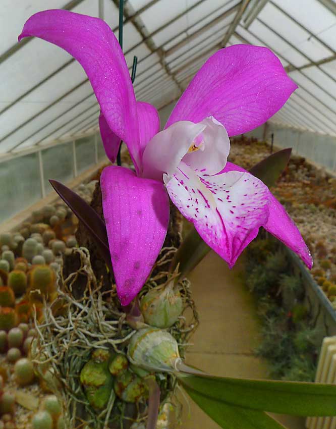 Rozkvetl další vzorek L. speciosa. Tentokráte od Santa Catarina, Guanajuato, Mex. 2293 m.n.m. Má velmi široký pysk. Ve tvaru a kresbě pysku je tento druh docela variabilní. Řekl bych, že pro pěstování tohoto druhu je optimální kaktusový skleník. Pak je kultura bezproblémová za předpokladu pěstování na větvi.