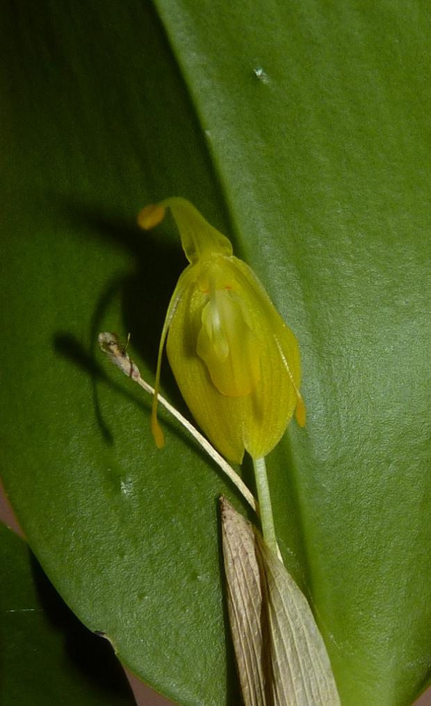Přicházím také se svou trochou do mlýna. Kvítek se krčil schovaný pod listem, tak jsem skoro přehlíd, že rozkvetla Restrepia aristulifera (správný název muscifera).