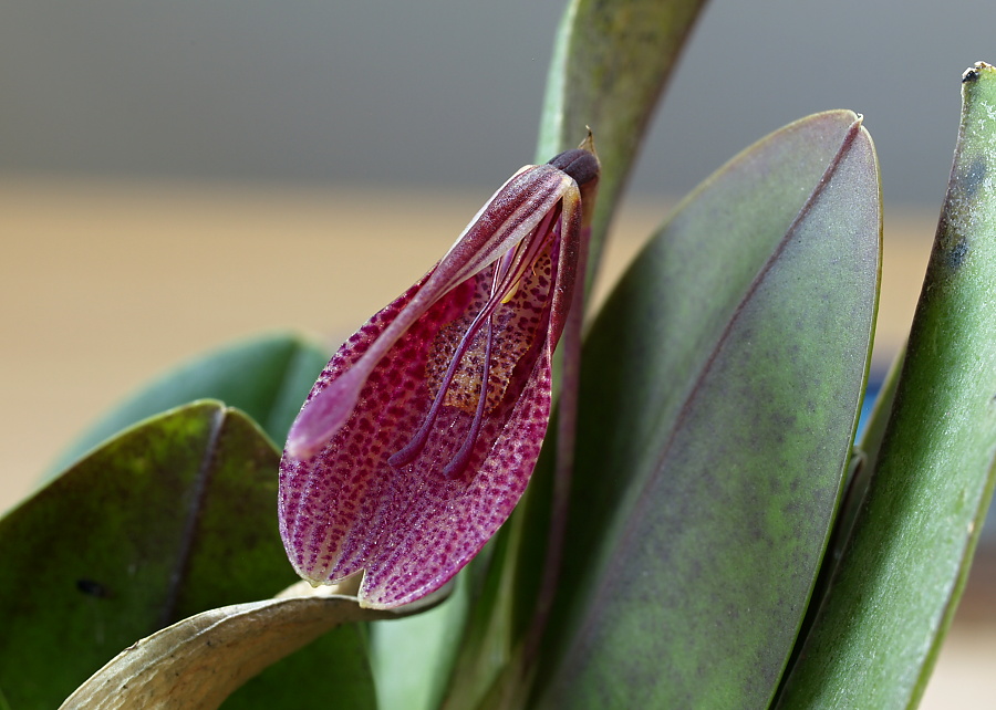 Restrepia elegans. Dlouho jsem čekal na květ, až teď na podzim jsem se dočkal.