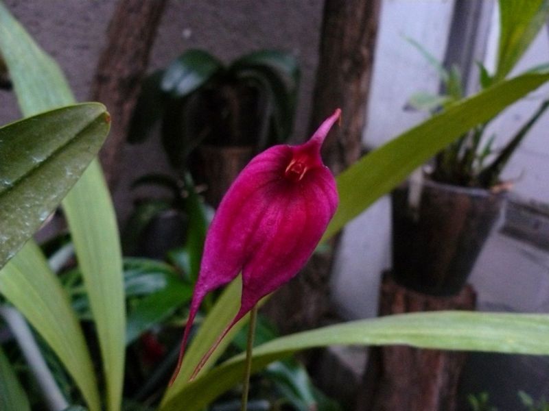 Dnes rozkvetla Masdevalia coccinea. Krásná tmavá barva.