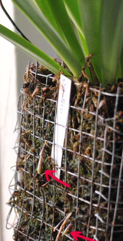 Draculu sp. jsem dal asi před třemi týdny k chladnému oknu (ve skleníku jsou už příliš rozdílné teploty ráno a odpoledne) - měla už květní výhon.