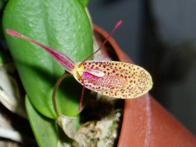 Jedna z běžných Restrépií. Dělám u ní vždy chybu, myslím si, že už je moc proschlá, tak jí trochu zaleji a květy mi odejdou. Na podzim měla nasazeno na dvacet květů a já je přílišnou péčí zničil.
