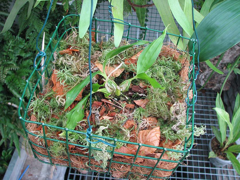 Tak jsem dneska přendala jeden menší Coryanthes do podobného nízkého košíku-třeba to poroste líp.Focení jako pro porovnání růstu je fakt dobrý.