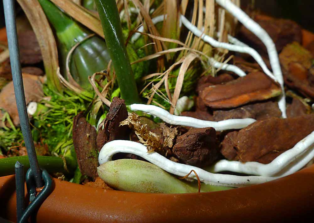 Vaclav píše: Neni jí protivná ta kůra? Možná jo. Nějak ale mám odzkoušeno že na koreny je dobře když spodní třetina v plastovém květináči je z toho mechu co používám a nad tím je piniovka s trochou mechu. Stvolům se to ale asi nelíbí. Tak snad se vyvine i přes okraj.