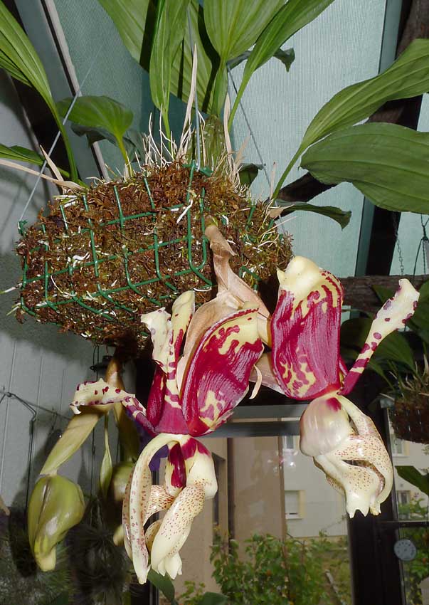 Tak ještě přidávám snímek Stanhopearia v květu + další tigrina co otáčí plátky rychle úplně nahoru. Ještě musím tu kulturu na příští rok vylepšit, ale alespoň mi už trochu kvetou. Bez květů by lítaly na kompost