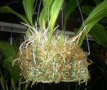 Tady ukáži tu "zlobivou" tigrinu co mi jako jediná nevykvetla a na níž jsem nejvíce čekal. Rostlina zdravá, kořeny dobré a přesto jediná vydatná zálivka v období sucha zhatila vše. Příští rok ale doufám vykvete. Je to zajímavá forma s tigrovanou kresbou. Pahlízy v období sucha zcvrkly tak, že byly svraštěné jako papír zrovna tak, jako u těch ostatních a přesto se dokázaly znovu napít k prasknutí. Uvádělo se tu, že v literatuře se píše, že pokud u Stanhopejí pahlízy scvrknou tak už se nikdy nedokáží znovu napít. Na této rostlině se ale ukázalo že je to jeden z mnoha omylů které jsou napsány nebo uváděny na internetu. Inu vlastní zkušenost a praxe jsou nenahraditelné. To platí dnes stejně jako před mnoha lety!