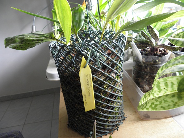 Haki ,jsi na ty Stanopeje šikovná.Mám jednu od roku 2009 a stále s ní zápasím,je to S.graveolescens.Nejspíš jí nevyhovovala kultura pěstování,z květináčku šla do latkového košíku,tam jsem ji ovšem sem tam zapoměla zalít a pahlízy se začaly pomalu,ale jistě zcvrkávat.Kořeny samozřejmě suché,prý jak jednou přeschnou je to nenávratné,četla jsem to v nějaké knížce,nevzpomenu si jaká to byla  Až u tebe sem viděla,že ji máš v tom pletivu,tak jsem jí udělala něco podobného,ale z plastového pletiva.Vystlala,cocochp.rašeliníkem,dřev.uhlím a ted koukám,že po měsící začíná růst zbrusu nová rostlinka.Takže jsem moc ráda a budu doufat,že už se jí bude jen dařit,přece jen to vysychání má delší interval.Snad se dočkám někdy květů,když jsem ji kupovala byl to malinký 10cm prcek o třech mini pahlízkách.