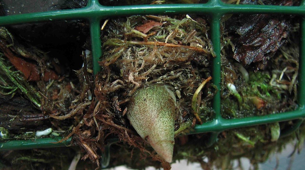 Tohle mám nejraději .Motáte se okolo kytky a stále nic nového není -nic netlačí.A pak najednou je to tu  takže Stanhopea hernandezii má květní stvol -na květy se těším jsou to takový malý strašidýlka -možná blbnu.