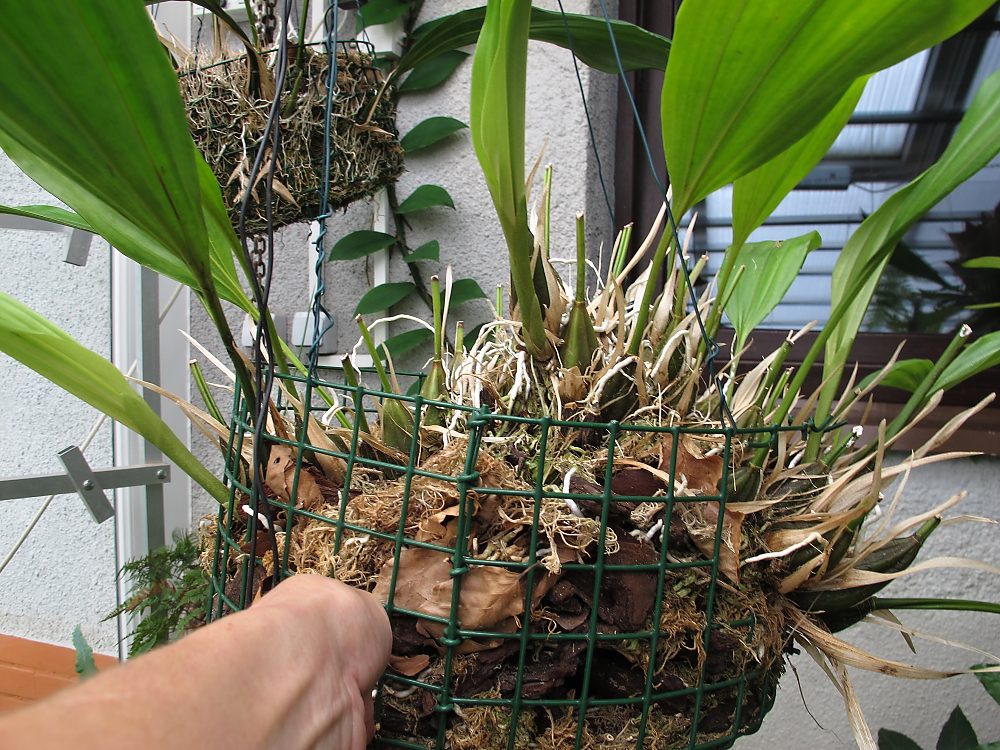 Pavle to by se vidělo -no ale koukni ta kytka si ze mě dělá fakt šprťouchlata roste přes celý koš v takovém jakoby pruhu a nahoře roste i do 1patra.Když 4 pahlízky na konci odstraním vůbec se nic nestane.Vím ,že se to tak říká co píšeš Já mám vlastní zkušenost - nemusí to tak vždy být.Viděla jsem také u 2pěstitelů 2Stanhopeje navázaný z poupětem kytka měla 4 seškvrklý pahlízky -vzhledově nic moc.Pravda kvetoucí jsem neviděla-třeba k tomu ani nedošlo .Možná se má v tom mém koši moc dobře myslím zrovna tento druh.Nemám co ztratit –zkušebního materiálu je dost a květ by vůbec neurazil. Asi chce víc přimáčknout nebo co .