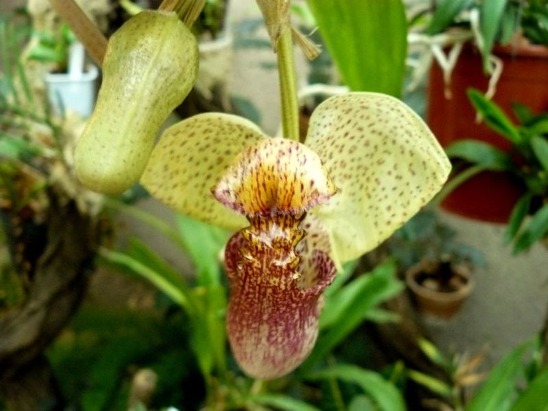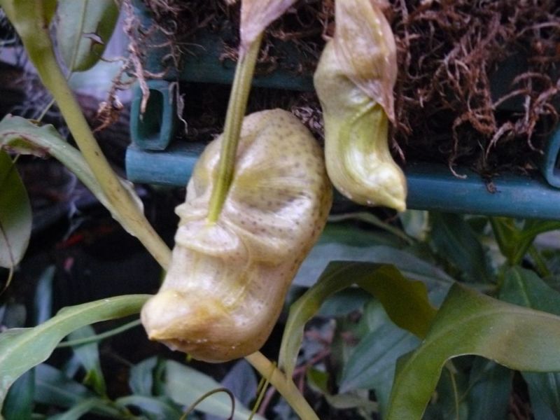 Tak toto je dosti těžko pěstitelná potvora. Vyžaduje trošku speciální zálivku s kyselinkou mravenčí. Poupata vypadají jako kukla larvy ale když se rozvine tak to vypadá jako no dámy hádejte, ale normálně to nemá křídla. (tedy alespoň mně to tak připadá)
