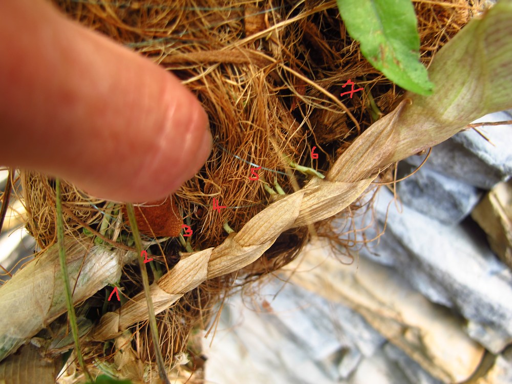 Nakonec to dopadlo neslavně ;) .Z květenství bude jen list .Ale Bulbo u mě vytáhlo rhizom do délky 10cm původní jen 4cm. Za každou tou šupinkou jdou kořeny ,takže na 7 místech koření. Co z toho vyroste za hovádko . Kytka je nahoře u makrolonu v nejsvětlejším koutě zz .