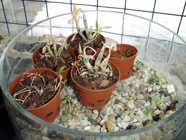 Základám ještě jedno téma a pak už opravdu skončím  Před půl rokem jsem vylahvil pět rostlinek D. Parishii. Jen tři však vypadají na přežití. Ovšem zdají se mi čím dál tím horší. Nemáte nějaké zkušenosti jak postupovat s takto vylahvenými dendrobkami? Teplotu mají cca 20 - 25°C, vlhkost cca 70%. Nezalévám, ale rosím. Substrát - piniovka.
