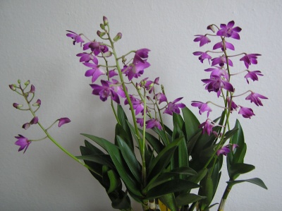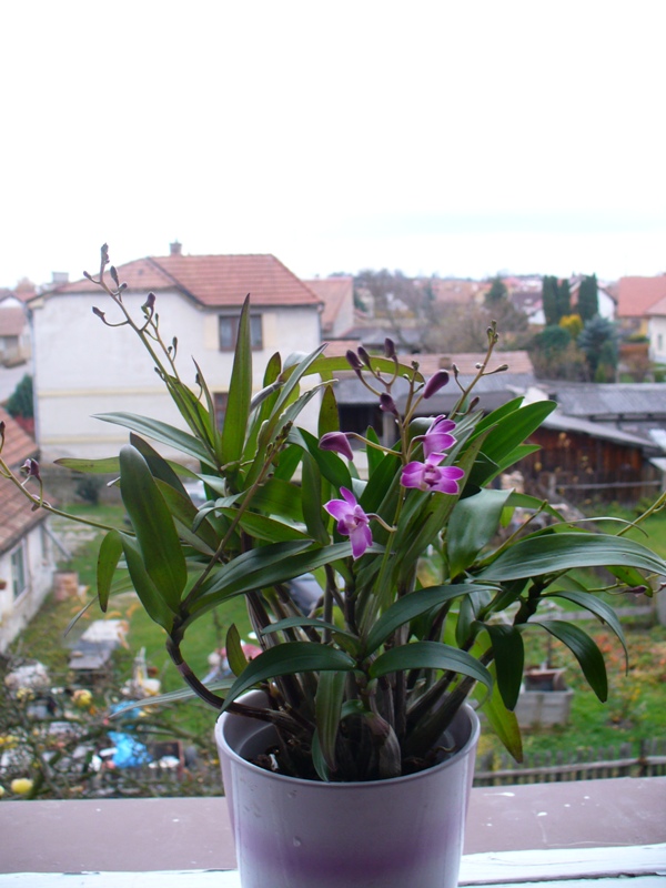 Ahoj, taky mi kvete Dendro fal loni koupene na Flore.Ma dva stvoly.Ja ho ale letnila a jen diky tomu mi vyhodiloty dva kvetni stvoly.Ted odjinud.Pred 2 lety jsem koupila trsik Dendra.Ted za 2 roky konecne kvete.Hodne se rozrostlo.Dala jsem ho k rodicum a jen diky nim kvete-jak ja rikam parapet a vychodni okno.Kvitky ma pidi malinke.Zatim ma 14 vyhonu,ale pokud z ocek pujdou vsechny,tak jich bude kolem 30.Mam fakt radost.Myslela jsem si,ze kvety budou male,ale tohle jsou extra mrnatka.Takhle to vypada skoro na botaniku,ale to tezko pac je to z kvetinarstvi.Jakpak se jmenuje zenhle pikolicek?