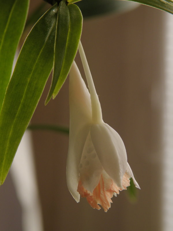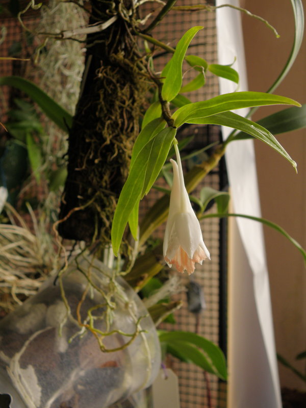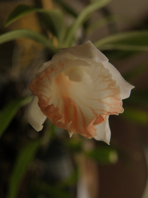 Přidávám pár foteček dalšího průběhu otevírání poupěte. Nyní již asi vím, co to znamená , když se řekne " dlouhotrvající květy" .....dva měsíce se poupě vyvíjí, další dva měsíce se otevírá, a další dva pomalu usychá .....  Začínám těmto dendrobiím přicházet na chuť....velikost kvítku bude oproti jiným mojim druhům opravdu nezanedbatelná, navíc vydává sice nikterak silné ale přesto velmi svěží a příjemné aroma, a to vzezření ... aerodynamický design jak z budoucnosti  . Díky velmi dlouhé ostruze si myslím, že opylovačem bude zřejmě nějaký lyšaj či jiná můra s dlouhým sosákem.