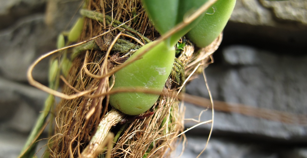 Jo to znám.  Člověk nikdy neví čemu podlehne. U p.Zímy jsem byla taky, sbírku má pěknou. Neměla jsem žádný záměr, jen jsem jela na čumendu .A měla jsem dvě bulba. Coco vlákno používám jen jako obal .Nedrží vodu ,asi by se hodilo jako drenáž .Vevnitř v těch mých balíčcích je substrát coco chips ,kůra trochu rašeliníku nebo mechu i někdy přidám kapradiny .Ještě jsem něco vyfotila ,jak to pak po čase vypadá. Nějaká kapradina vyroste i sama jak to ve skleníku lítá .Na kůře se taky pokouším pěstovat -ono se uvidí.