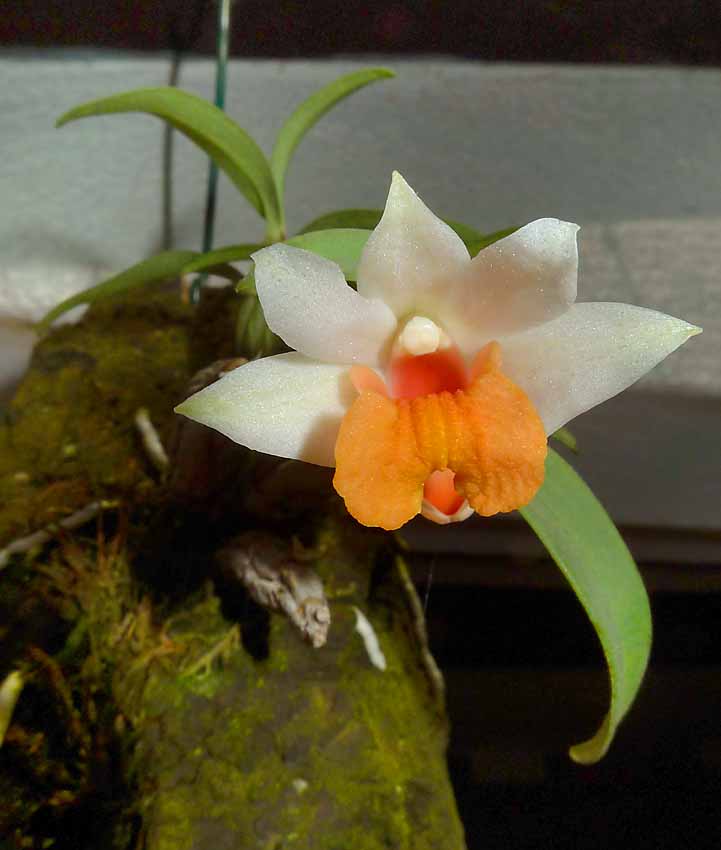 Rozdíly ve vybarvení pysku jsou u tohoto druhu dosti patrné. Loni jsem měl to štěstí, že jsem si mohl k těm svým žlutočerveným vybrat z kvetoucích rostlin tu s nejčervenějším pyskem. Je malá a teprve zakořeňuje na kůře. Nyní i tak vystrčila na ukázku jeden květ. Psalo se tu, že nejprve vykvétá žlutočerveně a pak se ještě dovybarvuje a červená. To je sice pravda, ale najdou se i klony, které mají po rozkvětu pysk pomerančové barvy a již druhý den zcela zčervenají a žluté nejsou tedy vůbec. A takovou rostlinu jsem loni koupil. Nyní jsem nafotil jeden snímek hned při rozevření květu a druhý další den. Oproti těm mým starším rostlinám je to veliký rozdíl.