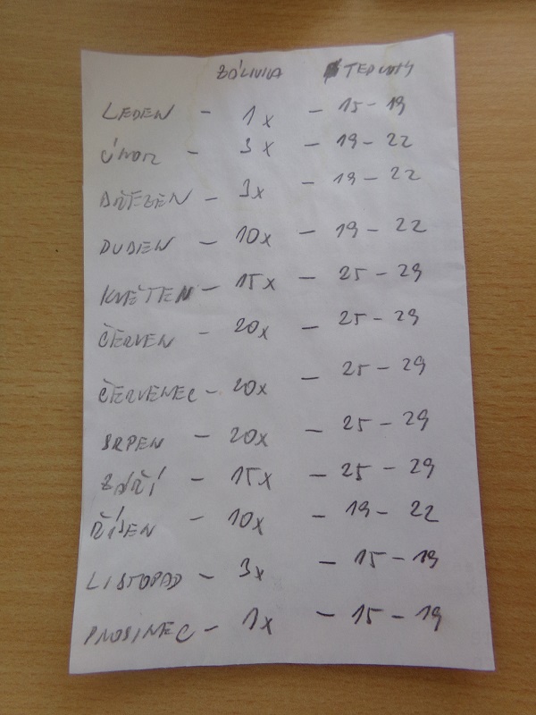 Podobnou tabulku mám k D. senile akorát se srážkami v mm, denními i nočními průměry a maxima i minima.
