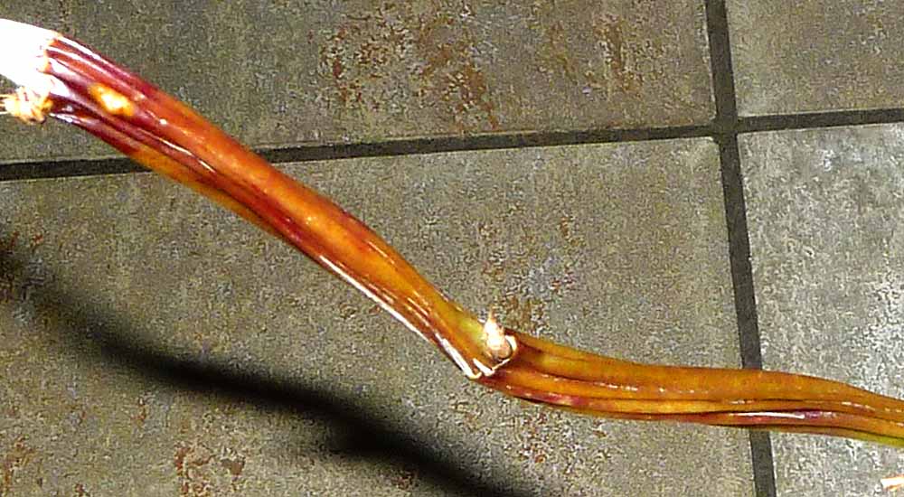 Tak jsem to dnes vyfotil. Máte pravdu nic nedělá, listy opadly asi tím průvanem z ventilátoru. Kytka se jich asi zbavila ať neodpařují zbytečně vodu. A s novým výhonem nevím, mi ho vypouští někdy v srpnu. Uvidíme, co letos.