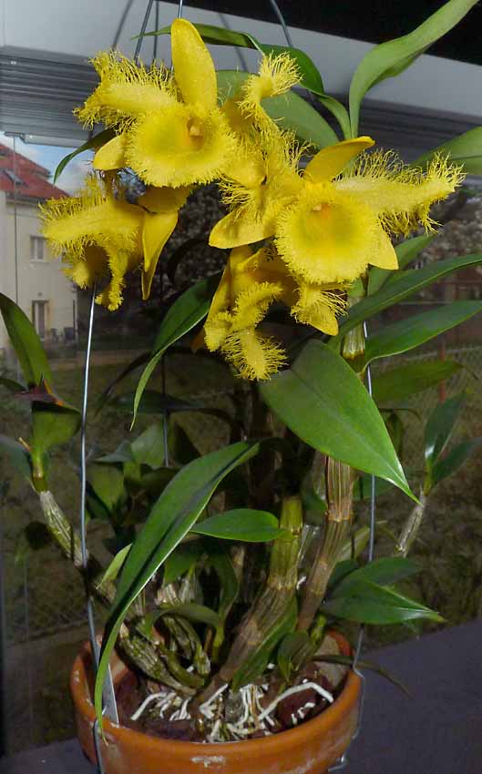 Asi Vám takhle pokvetou i letos. Nevadí kdy kvetou, ale hlavně že kvetou. Ten pohled na ty krásné květy je dobré zažívat alespoň jedenkráte za rok  Já mám pahlízy napité k prasknutí ale bouličky nikde. Mám ho trochu opožděné. Za dva roky se docela rozrostlo. Líbí se mi i bez květů jak je naducané. Navíc jde o méně vzrůstný druh s rozumnými výhony  Silnější pahlízy dokáží utáhnout i více jak dvě květenství.