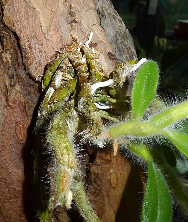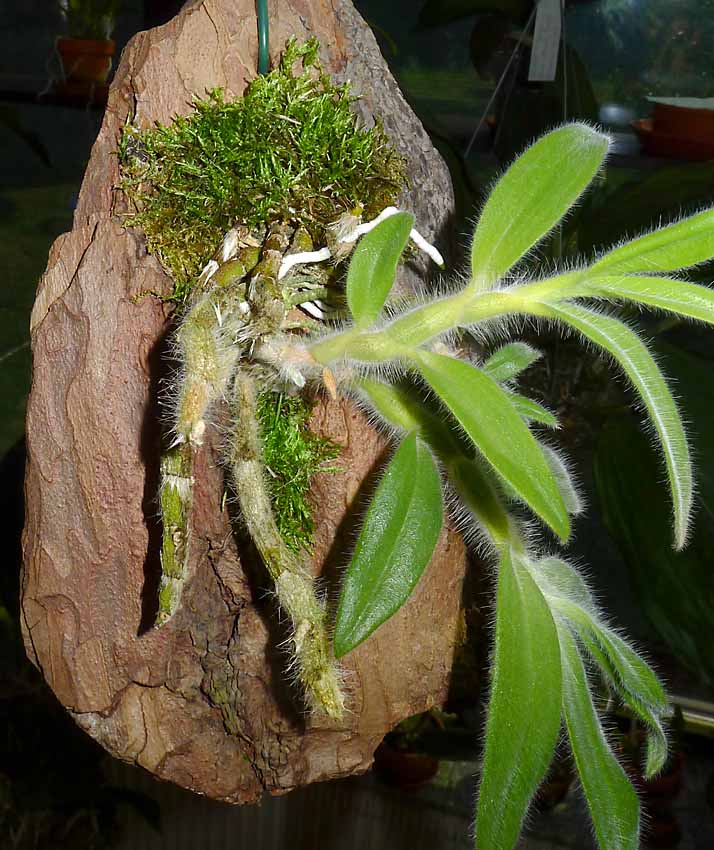 To z Drážďan moc nenarostlo protože jsem ho přilepil na holou borovou kůru která rychle oschne. Připadá mi lepší když se okolo dá trocha takového jemného mechu co mi roste v trávníku. Na rozjezd kytky je to dobré. I tak ale z toho nic co jsem přilepil tak to docela narostlo. Na kvetení to ale není. Možná ty zimní pahlízy kdyby se podařily silnější tak by kvítek mohly vytlačit na jaře.