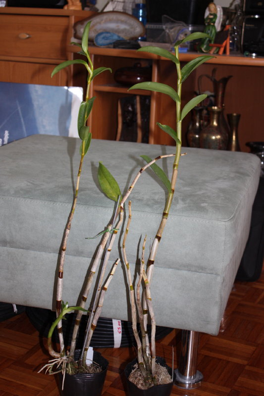 Ahoj, tiež som objednala asi pred 2 mesiacmi z Pokojoviek 2 ks, neviem z ktorého zdroja boli. Jedno mi ostalo, druhé šlo do sveta, sú vysoké hodne, asi 80 cm, ale zas nejdú moc do šírky, čo je výhoda, na mojom rastie pekne nový výhon, staré výhony sú v podstate holé a už neproduktívne, neviem či to časom odumrie alebo čo...To druhé malo tiež výhon ale na tom už asi nepokvitne, poškodil sa vršok  . A práve ide o to, ako ho donútiť vytvoriť další výhon. Neviem či to chce len čas, teplo a svetlo, alebo sa tomu dá dopomôcť aj namáčaním odspodu alebo rosením okolia báz. Každá finta je dobrá  . Moje mám na balkone od rána na plnom slnku, pred obedom tak ako ostatným trochu pritienim, ale je tam stejne ovela viac svetla ako vnútri, namáčam ho odspodu asi tak raz za 7 dní (v lete bude treba 2 x) a okrem toho mu rosím denne okolie báz a povrch substrátu, ale nie priamo na rastlinu. Je v zmesi kôry a sfagna s prímesou polystyrénu a uhlia, taká zmes čo trošku lepšie drží vlhkosť ale zároven dobre presychá. naspodu je drenáž. Zatial ho nehnojím, je presadené zo sfagna asi vyše mesiaca, myslím, že po presadení potrebuje čas než si zvykne a potom sa aj to druhé snád pohne k lepšiemu. Tak ako ho prinútiť aby vyrazil nový výhon ?